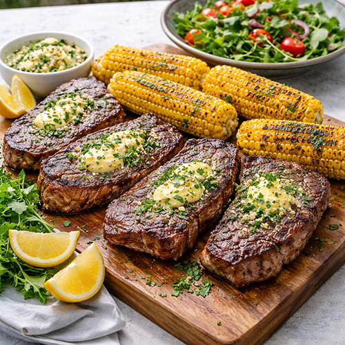 BBQ Rump Steak with Garlic Butter & Grilled Corn